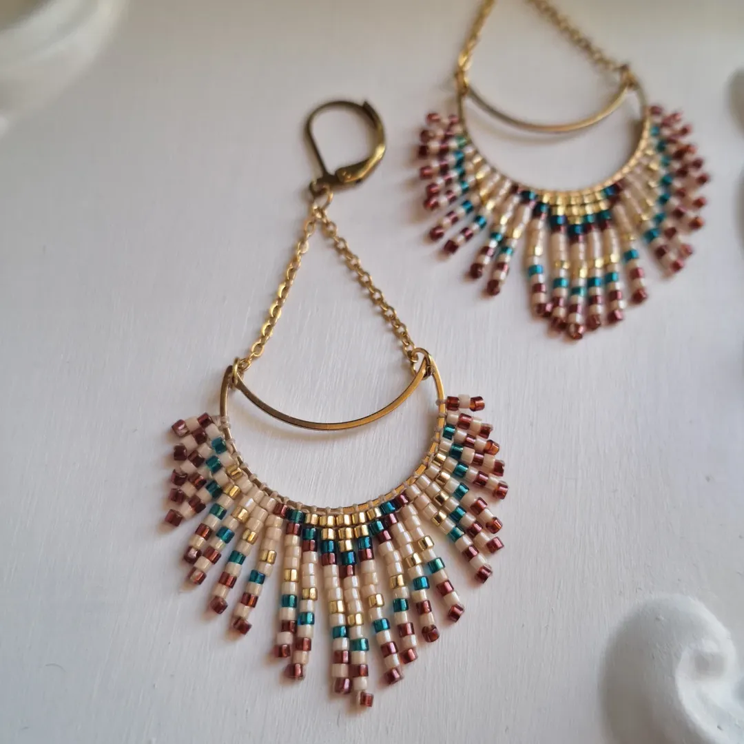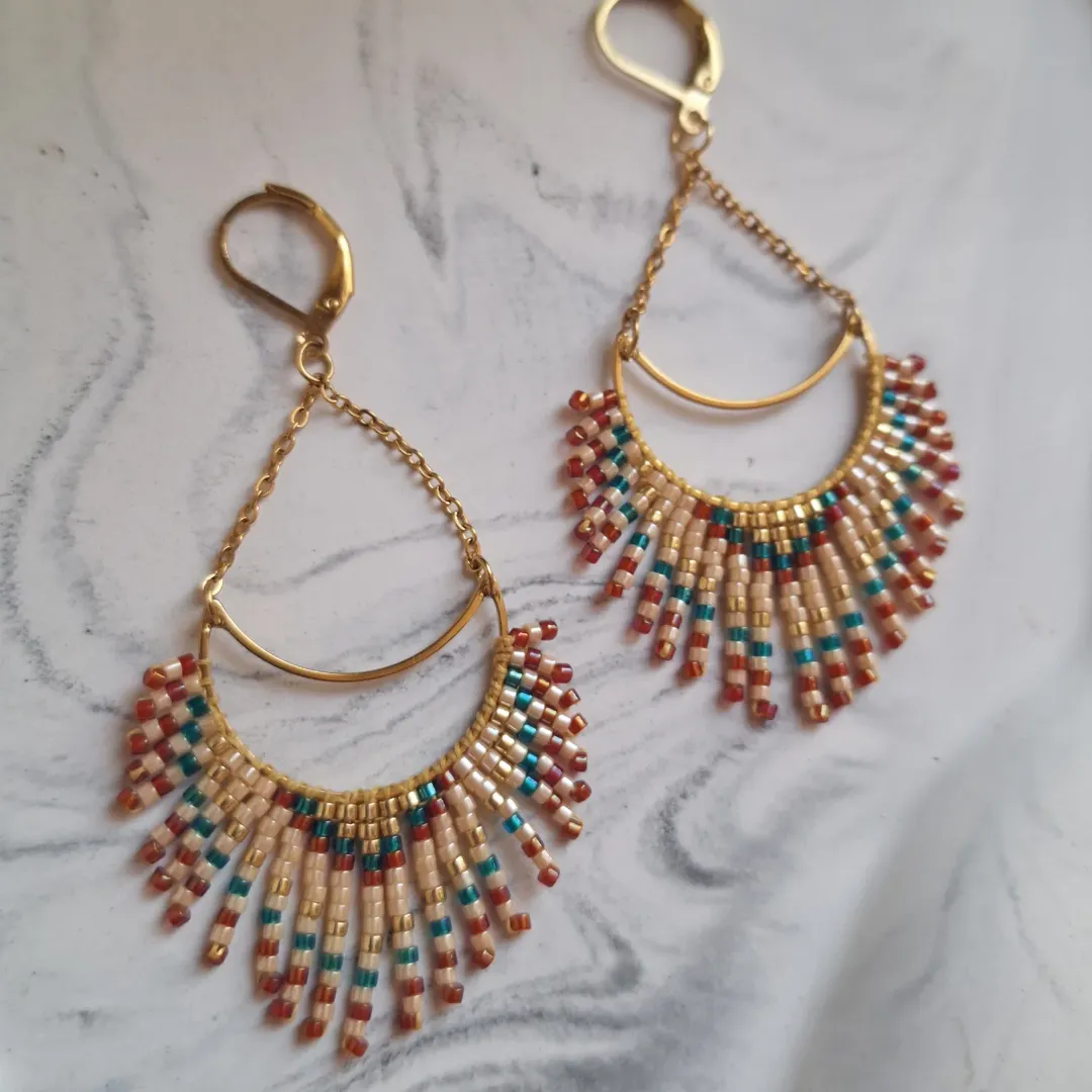 گوشواره دستساز بافته شده با منجوق های میوکی ژاپن